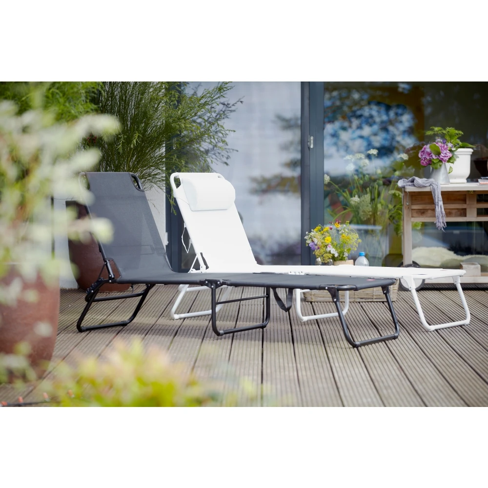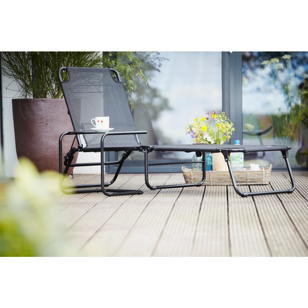 | Besonderheit | 3-fach verstellbare Rückenlehne; Maße zusammengeklappt: 77 x 61 x 13 cm |