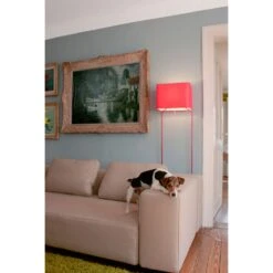 Schick, geschmackvoll und praktisch – eine Wandstehleuchte die überall dort Licht spendet, wo eine Wandanschluss fehlt. Das ist ThinLissie – der zweite Klassiker unter den Entwürfen des Labels FRAUMAIER. Ein grafischer, schwerelos wirkender Entwurf, der es geschafft hat in über 25 Ländern nicht nur die Herzen von Liebhabern zeitgenössischen Designs leuchten zu lassen, sondern auch zahllose Räume. Durch die große Farbpalette die von leuchtenden Akzentfarben bis hin zu dunklen Tönen reicht, passt sich die Leuchte jeder Umgebung an. Der chintzbezogene Schirm beeinflusst die Lichtfarbe nur dann stärker, wenn sich im Raum sonst keine Lichtquellen befinden. Das meiste Licht entweicht über die Öffnungen unten und oben im Schirm, der selbst ein eher sanftes Licht erzeugt. Getragen wird er von einem Fuß aus Stahlrundmaterial in glänzender Pulverbeschichtung, das die Leuchte gleichzeitig leicht und stabil werden läßt. Der schlanke Bügel der Leuchte passt mit 10mm unter fast jedes Sofa oder Bett, die Leuchte selbst braucht allerdings nur eine Wand um stabil zu stehen. Sie frei in den Raum zu stellen ist nicht möglich. ThinLissie passt auch gut in Raumecken, hinter Sofas und Betten und benötigt grundsätzlich wenig Platz um zu wirken. Dank ihres hohen und schlanken Designs wirkt sie auf frische Art elegant und eignet sich nicht nur als Leseleuchte, sondern auch für stimmungsvolles Licht im Wohn- oder Schlafbereich. Das Leuchtmittel benötigt eine gängige E27 Fassung, ist jederzeit tauschbar und macht die Leuchte damit zukunftssicher. Erhältlich ist die Leuchte in verschiedenen Varianten: mit einem Trittschalter am Boden oder einem Zugschalter an der Fassung. Beide Varianten sind mit oder ohne Dim To Switch-LED erhältlich. Dim To Switch ist Dimmen über den Schalter in 3 Stufen: die volle Helligkeit, eine cozy, also gemütliche Variante und eine candlelight Einstellung, die sich auch gut als Nachtlicht eignet. Die beigefügten LEDs haben 1600 Lumen bei 16 Watt Verbrauch (entspricht einer alten 100W Glühbirne) und eine warme Lichtfarbe von 2700K.