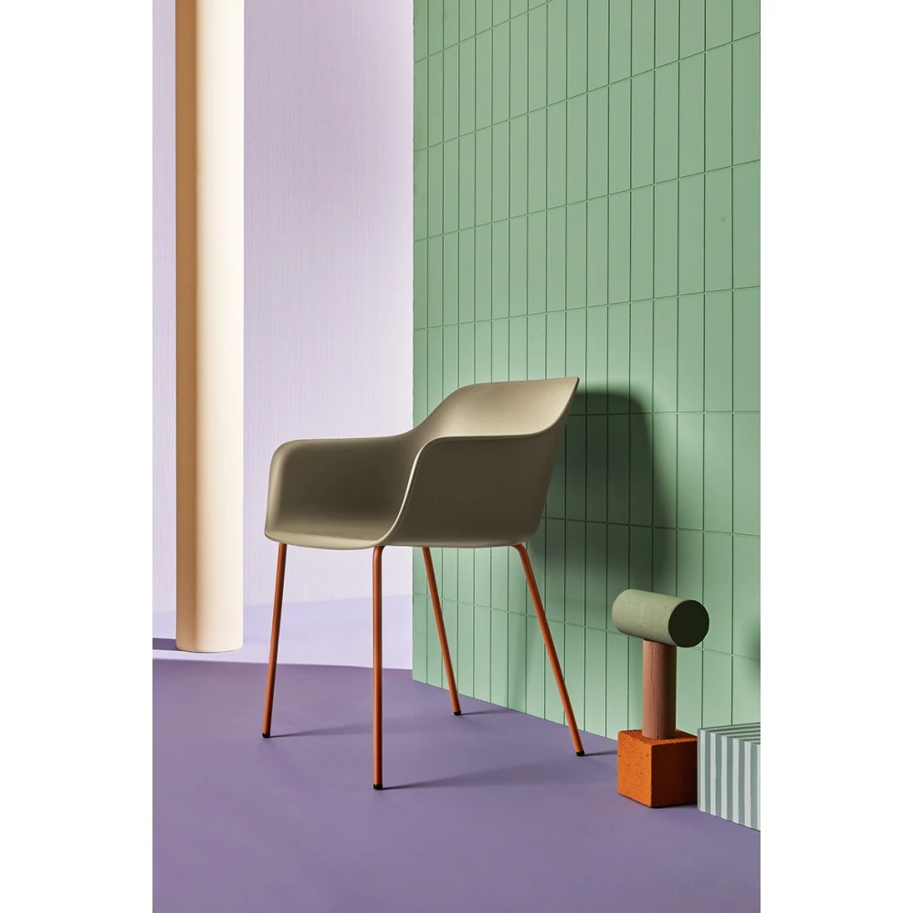 Babila XL fügt sich harmonisch in eine Kollektion ein, die sich elegant zwischen Tradition und Innovation bewegt. Ein Armlehnstuhl mit einer Schale aus geformtem Polypropylen, der sich durch die Größe von Sitz und Armlehne auszeichnet. Die Beine bestehen aus Stahlrohr Ø 16 mm. Zudem gibt es eine neue Version von Babila XL, die vollständig aus recyceltem Material hergestellt wird: 50% aus Post-Verbraucher-Kunststoffabfällen und 50% aus industriellen Kunststoffabfällen. Babila XL „recycled grey“ ist eines der ersten Produkte von Pedrali aus recyceltem Polypropylen.