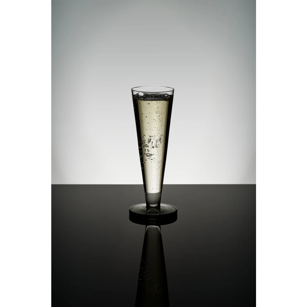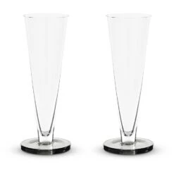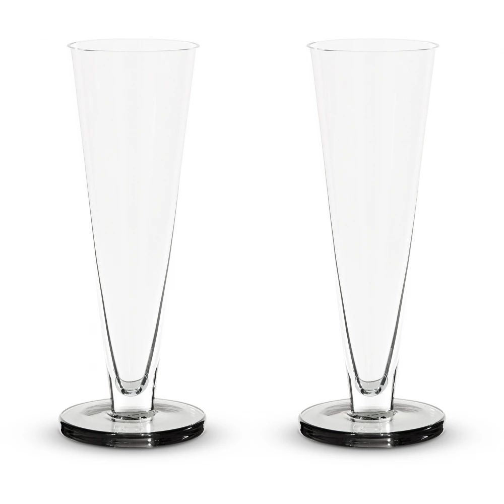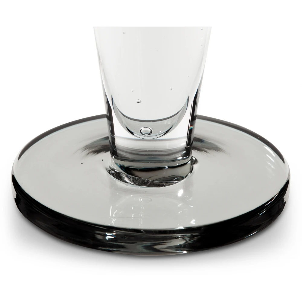 Tom Dixon Champagnergläser bestehen aus mundgeblasenem Glas versehen mit einem Hauch von Rauchfarbe. Die Gläser sind mit einem dicken Boden verankert, der an Pucks erinnert, minimal und schwergewichtig. Die Puck-Gläser sind widerstandsfähig genug, um in einer professionellen Cocktailumgebung zu überleben