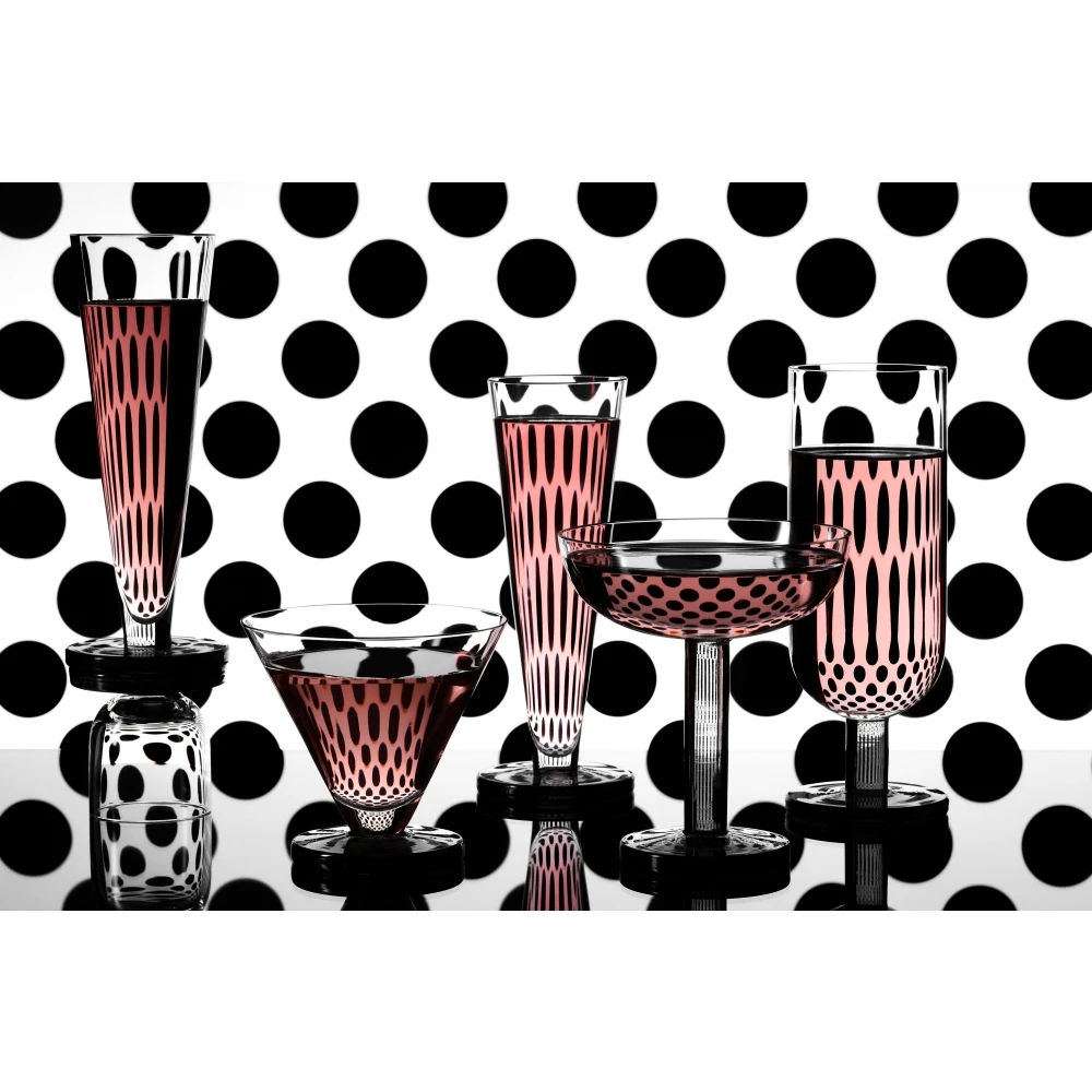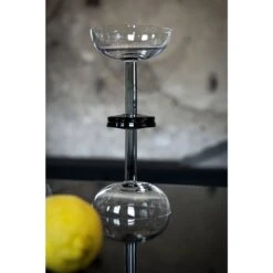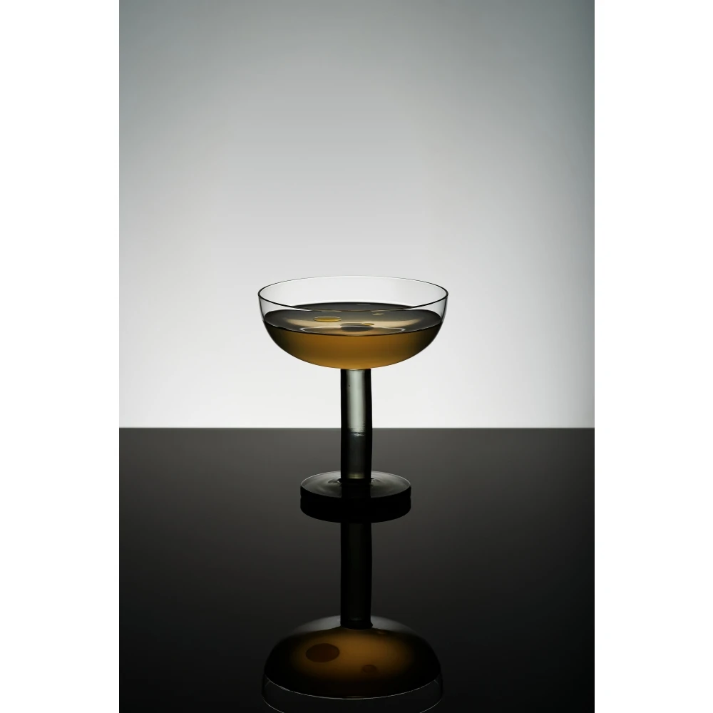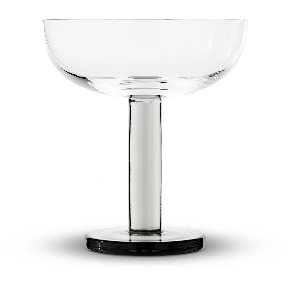 Tom Dixon Coupégläser bestehen aus mundgeblasenem Glas versehen mit einem Hauch von Rauchfarbe. Die Gläser sind mit einem dicken Boden verankert, der an Pucks erinnert, minimal und schwergewichtig. Die Puck-Gläser sind widerstandsfähig genug, um in einer professionellen Cocktailumgebung zu überleben