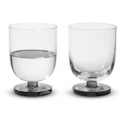 Dieses Paar Wassergläser von Tom Dixon ist aus mundgeblasenem Glas mit einem Hauch von Rauchfarbe gefertigt. Verankert mit einem dicken Boden, der an Spielpucks erinnert, minimal und schwergewichtig, sind die Puck-Gläser robust genug, um in einer professionellen Cocktailumgebung zu überleben.