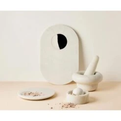 Das einfachste aller Werkzeuge: Rollen Sie die Kugel mit dem Druck Ihrer Handfläche und pulverisieren Sie Ihre Gewürze. Getestet und genehmigt von unserer Londoner Küche. Geschnitzt aus massiven Marmorblöcken mit einer Marmorkugel. Ideal in Kombination mit unserem Steinstößel und Mörser.